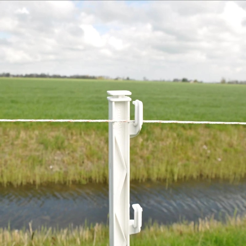 Met de 9 genummerde draadhouders is de vario paal voor bijna alle diersoorten te gebruiken. De vario paal is geschikt voor kunststofdraad en lint tot 20 mm. De maximale afrasteringshoogte is 0,85 meter.