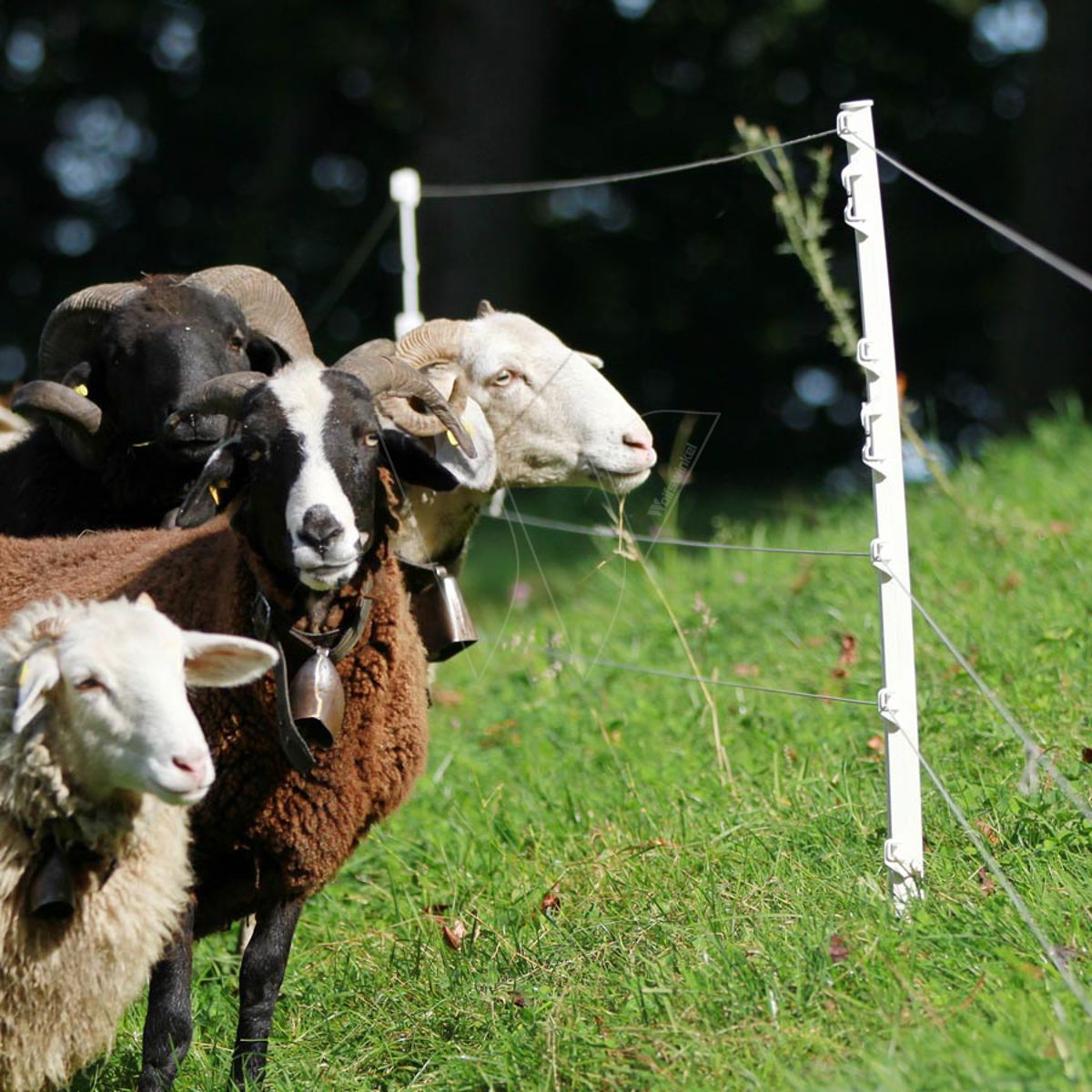 Zeer stevige en duurzame kunststof paal met 6 genummerde draadhouders en extra versterkte voet. Geschikt voor cord, kunststofdraad en lint tot 20 mm. De maximale afrasteringshoogte is 0,50 meter.