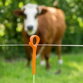 Uiterst sterke, ergonomische en duurzame afrasteringspaal. De Ring top paal is sterk aangezien er geen slijtage optreedt. Dit komt door het gebruik van glasgevuld nylon. De paal is ergonomisch door de brede voet en de draadhouder die niet verstrikt raakt wanneer u een bundel palen met u meedraagt. De duurzaamheid zit hem in de UV protectie en het gebruik van hoogwaardig nylon en een gegalvaniseerde paal. De maximale afrasteringshoogte met een ring top paal is 0,80 meter.